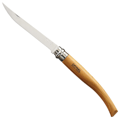 Нож опинель Effile №8 VRI немного отличается от продукции линейки Tradition, производством которой французские специалисты занимаются еще с 1980 года. Именно поэтому рукоятка имеет зауженную форму, благодаря чему удобно лежит в руке и не скользит во время работы. Как и положено, клинок данной модели имеет тонкую и зауженную форму.