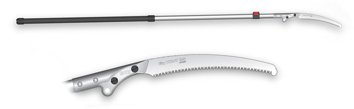 Пила Silky состоит из телескопической штанги (2000 мм - 3300 мм) состоящей из двух секций, полотна пилы и защитного чехла на пилу с фиксацией.