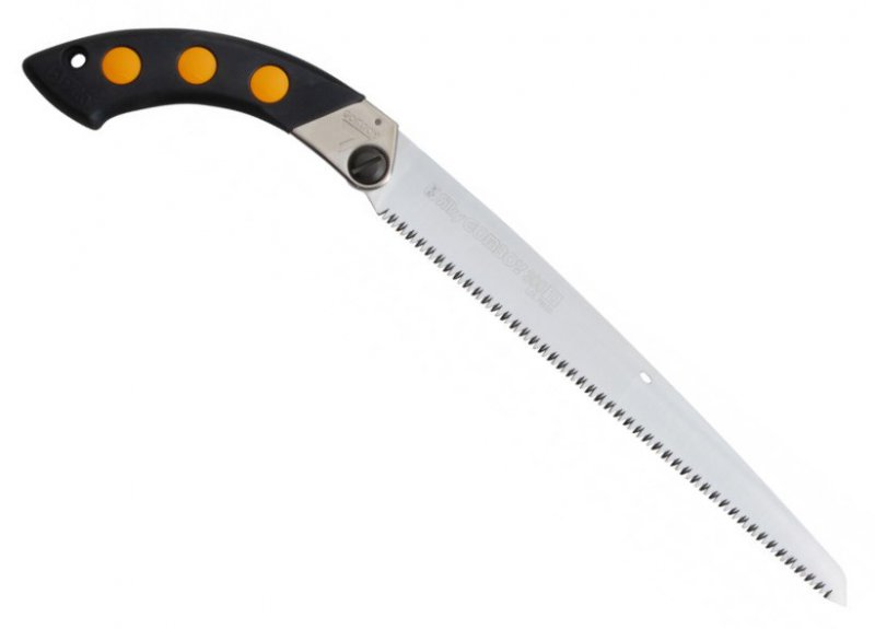 Стальной корпус рукоятки пилы Silky имеет покрытие из эластомера, что обеспечивает отличное сцепление, гасит удары и вибрацию. Крепление полотна происходит при помощи винтового соединения, позволяя легко заменить лезвие. Полотно пилы, взаимозаменяемое со складными пилами серии Gomboy. Загнутая форма ручки снимает нагрузку на кисть, делая работу пилой комфортной. Инструмент может также использоваться при работе левой рукой.