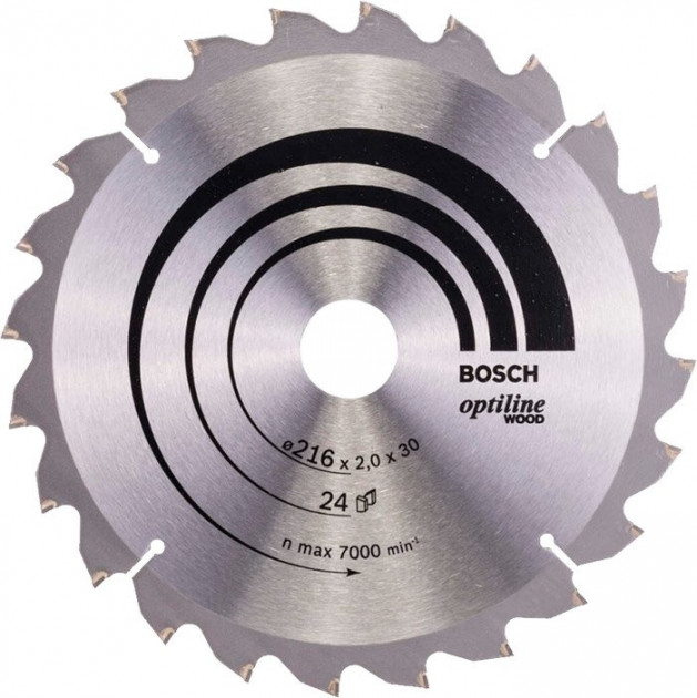 Характеристики пильного диска Bosch Optiline Wood 216×30 мм 24 зуба (2608640431):
