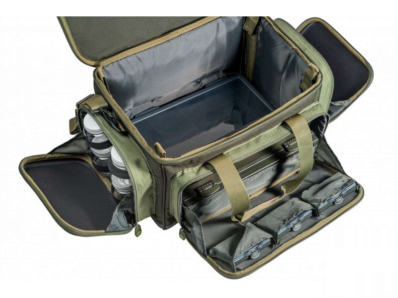 Купить в кредитРоскошная и большая сумка для карповой ловли со многими аксессуарами. Материал B-POL600D, используемый при изготовлении, гарантирует долговечность, простоту ухода и 100% водонепроницаемость. Жесткую крышку специальной формы можно использовать в качестве стола для аксессуаров. Ножки этого стола встроены в углы сумки. Мягкий наплечный ремень обеспечивает удобную транспортировку. Эта сумка включает в себя двойную поводочницу, одну большую коробку и три меньшие коробки для аксессуаров. Восемь высококачественных погружных контейнеров с улучшенной герметизацией входят в стандартную комплектацию.
