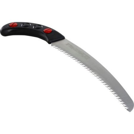 На основании цельной с лезвием рукоятки плотно насажено покрытие из эластомера, что обеспечивает отличное сцепление, гасит удары и вибрацию. Фиксация прорезиненной рукоятки происходит при помощи пластиковых винтов фиксаторов, придающих узнаваемый для пил Silky дизайнерский вид. Загнутая форма ручки снимает нагрузку на кисть, делая работу пилой комфортной. Инструмент может также использоваться при работе левой рукой.