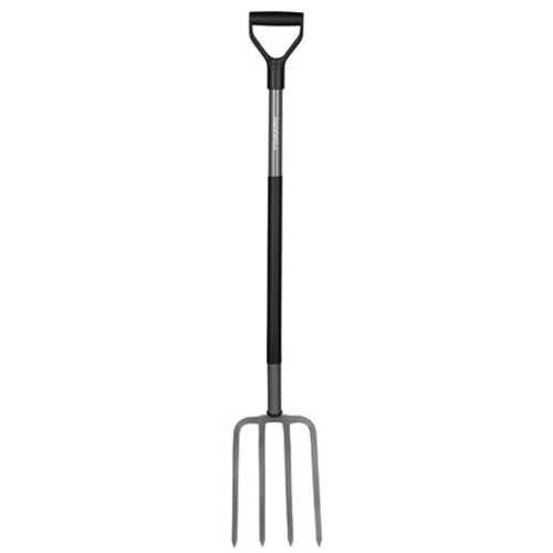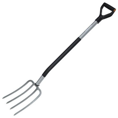 Конструкция вил Fiskars серии «Эргономик» позволяет садоводу сохранить правильное положение тела в процессе работы. Угол подъем в 26º минимизирует нагрузку на спину и плечи. Длинный, полый стальной черенок имеет пластиковое покрытие, защищающее от холода, а рукоятка, расположенная к черенку под углом 17 градусов, гарантирует руке удобный и естественный хват.
