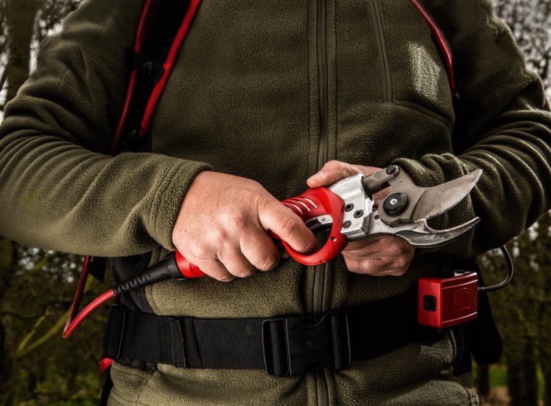 Управление и питание устройства FELCO 880 обеспечивается за счет блока питания, который состоит из батареи и зарядного устройства; модель FELCO 820 стала результатом тщательных разработок в области эргономики, снизив нагрузку на мышцы рук и плеч в течение всего дня, проведенного на работе по подрезке.