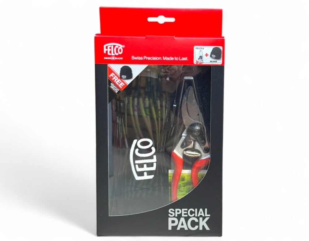 Секатор Felco 8 + фирменная шапка Felco (подарочный набор) – это идеальный подарок для садовода, сочетающий профессиональный инструмент с практичным аксессуаром. Набор состоит из одного из самых популярных секаторов Felco 8, а также шапки, которая пригодится для работы в саду зимой.