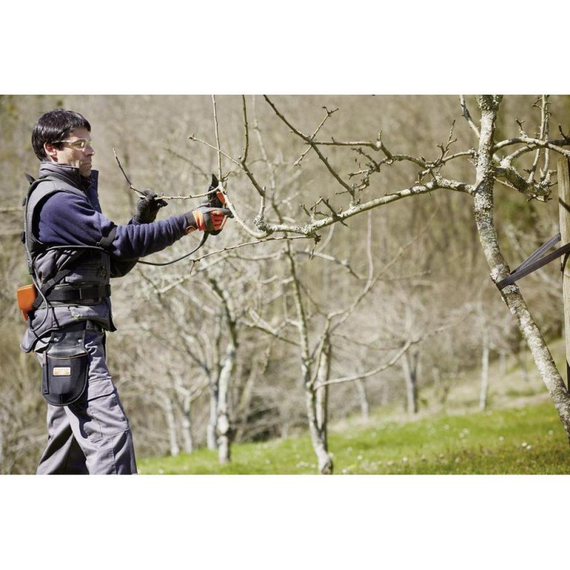 Купить в кредитСекатор аккумуляторный Bahco BCL22 - Cекатор с электрическим приводом для обрезки плодового сада и виноградника. Электрический секатор идеально подходит для среза толстых, в том числе сухих веток толщиной до 45 мм. При этом специальнаое покрытие лезвия, гарантирует идеально чистый срез, и способствует лучшему проникновению в древесину. Производительность секатора Bahco впечатляет, количество срезов и темп работы по сравнению с механическими ручными секаторами, дает вам неограниченные возможности при продолжительной обрезке. Время непрерывной работы на одной зарядке аккумулятора электросекатора Bahco bcl22 равна 12 часам. Секатор для деревьев Bahco BCL22 позволяет производить обрезку больших площадей, будь то виноградник, плодовые деревья, муниципальные работы или кустарники. Портативный секатор комплектуется мощным литий-ионным аккумулятором (Li-ion) имеет 250 Вт. Для комфортного использования, вся система (секатор, аккумуляторный блок, электроника управления) размещена в практичном ранце. Вес секатора всего 860 г. Вынесенный блок управления, закрепляется на плечевом ремне, представляет собой пульт с кнопкой, а также светодиодным и звуковым индикатором. С его помощью можно выбрать необходимый режим работы аккумуляторного секатора (ширину раскрытия лезвий). Включение секатора происходит при помощи куркового выключателя, что очень удобно и не создает значительных усилий при работе. Соединение секатора с блоком питания и управления, происходит посредством гибкого, высокопрочного соединительного кабеля. Предусмотрено подключение, как для правши, так и для левши. Аккумуляторный секатор Bahco поставляется в фирменом кейсе.