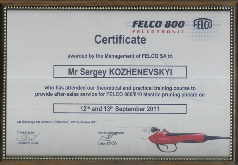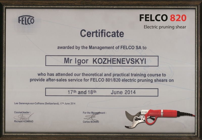 Компания Водоспад - официальный сервисный центр электрических секаторов Felco в Украине.
