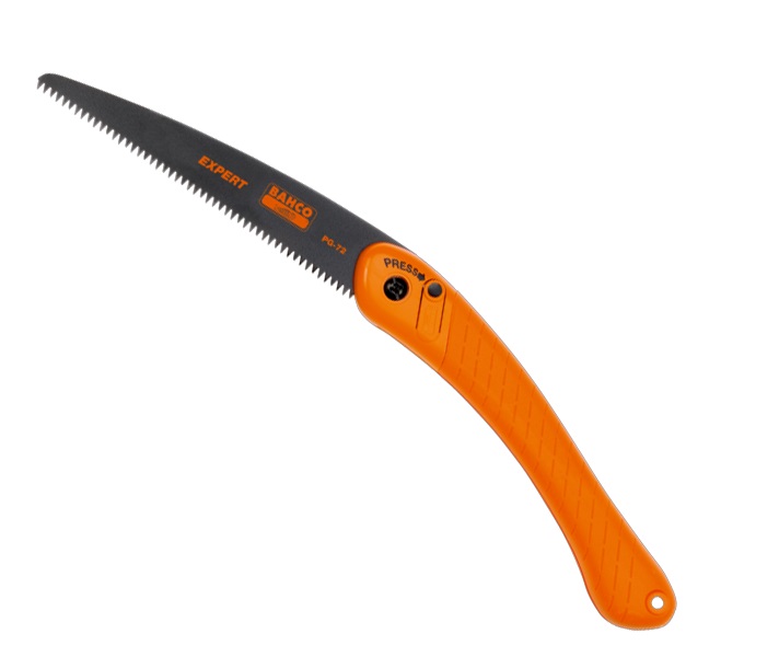 Складная обрезная пила BAHCO PG-72. Предназначена складная обрезная пила BAHCO PG-72 для пропила в местах, где работа секатором или сучкорезом не будет эффективна. У складной обрезной пилы BAHCO PG-72 низкофрикционное антикоррозионное покрытие, обеспечивающее легкое пыление сухой и твердой древесины.