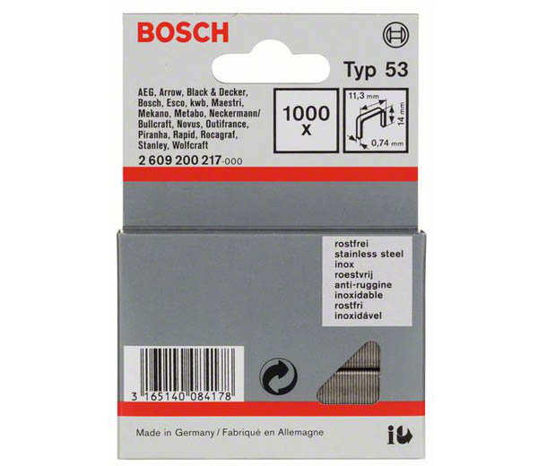 Скобы из нержавеющей стали Bosch, тип 53, 14 мм (2609200217)
