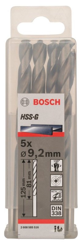 Сверла по металлу Bosch HSS-G, DIN 338, 9,2×81 мм, 5 шт (2608585516)