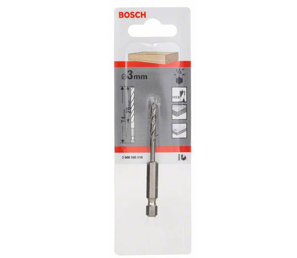 Сверло по дереву Bosch с шестигранным хвостовиком 1/4" (3 x 33 x 74 mm)