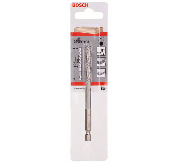 Купить в кредитBosch HSS сверло по дереву спиральное с шестигранным хвостовиком 1/4"