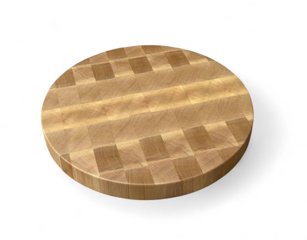 - Тип конструкции: Круглая. Торцевой срез (end grain), обеспечивающий минимальный износ ножей и максимальную долговечность самой доски.