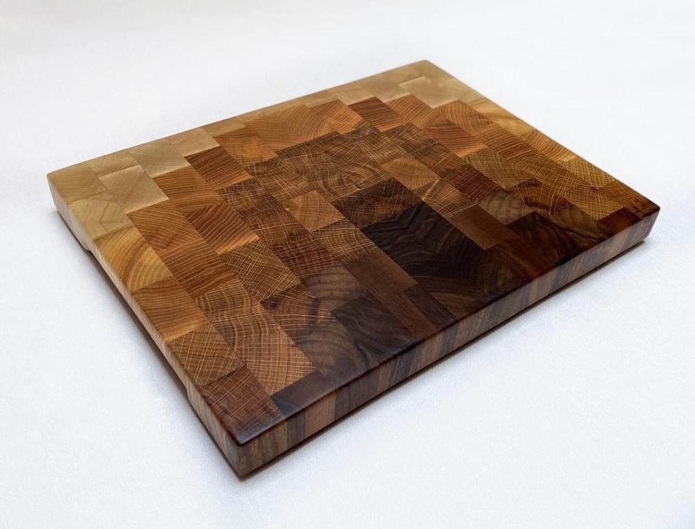 Торцевая доска для нарезки (GRADIENT Дуб-Орех-Ясень-Граб), серия - LUXURY. Размеры 350 х 250 х 30 мм. Тип – градиент (дуб, ясень, орех, граб). (модель - 3525030G)