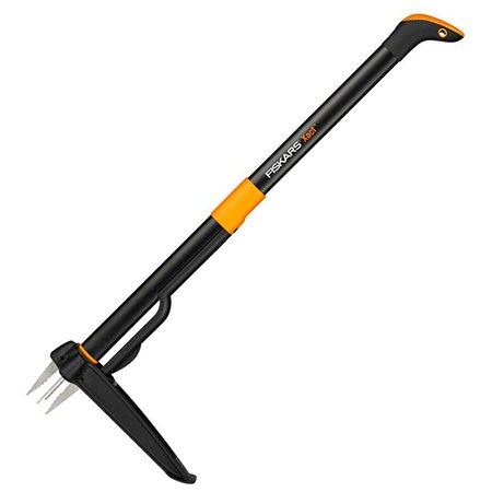 Три стальных зубца без проблем входят в почву и зажимают сорняк при наклоне инструмента вбок. Рукоять орудия изготовлена из прочного композитного полиамида и может раздвигаться, подстраиваясь под рост пользователя.