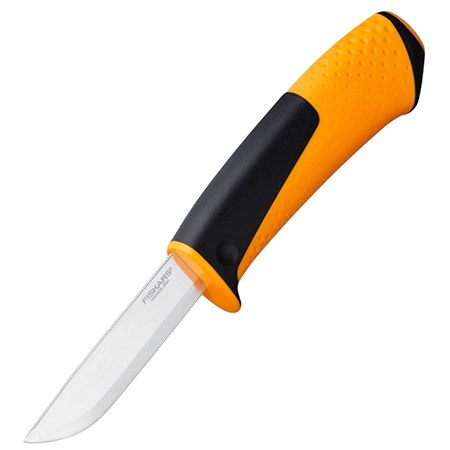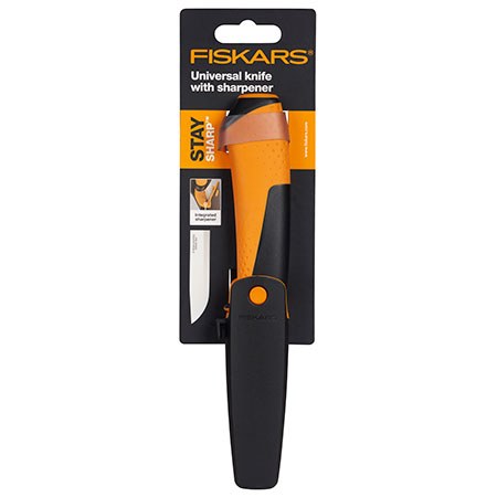 Купить в кредитУниверсальный нож Fiskars с точилом является очень востребованным инструментом. Дело в том, что он может использоваться в любой деятельности максимально эффективно и удобно. При этом его главной особенностью является встроенная в чехол точилка. Это действительно очень удобно, особенно, когда под рукой нет точила. Если говорить о лезвии, то оно выполнено из нержавеющей стали. Это обеспечивает защиту от коррозии и длительный срок эксплуатации инструмента. При этом заточка сохраняется долгое время!
