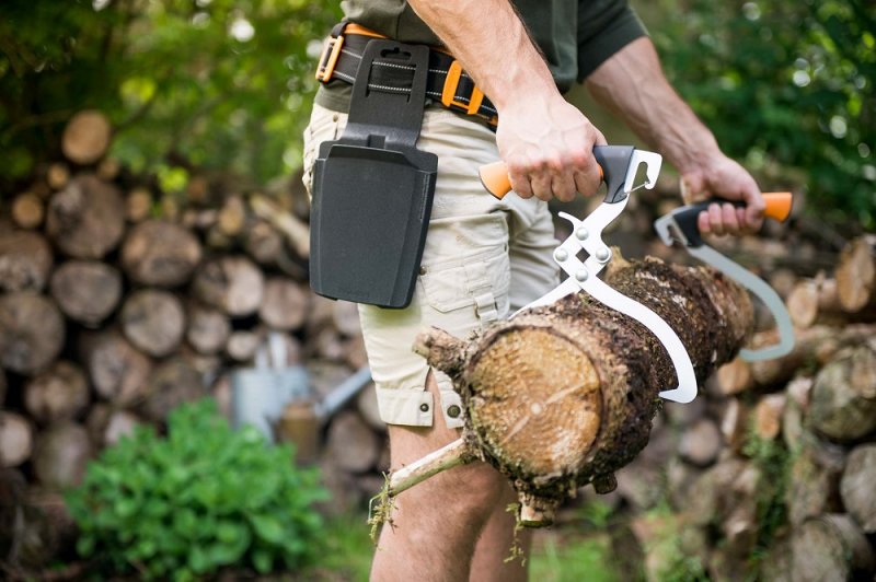 Чтобы снизить нагрузку на позвоночник, данное приспособление рекомендуют покупать совместно с поясом для носки инструментов. В комплект входит пластиковый чехол, при помощи которого как раз и появляется возможность зацепить захват для бревен на поясе. Профессиональный типаж инструмента позволяет оптимально использовать его при садово-дачной заготовке дров и одновременно при валке леса дровосеками.